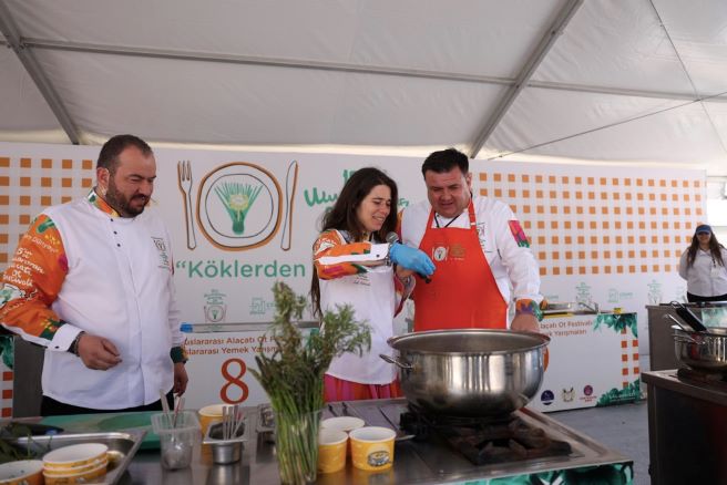 Alaçatı Pazaryeri Camii arkasında kurulan “Şefler Meydanı”nda gerçekleştirilen uluslararası