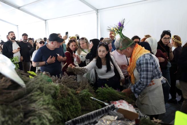 kişinin katılımıyla festival alanları dolup taşarken, yerel üreticilerin otlar, enginar ve Çeşme