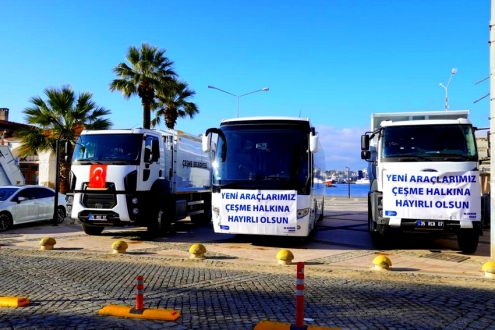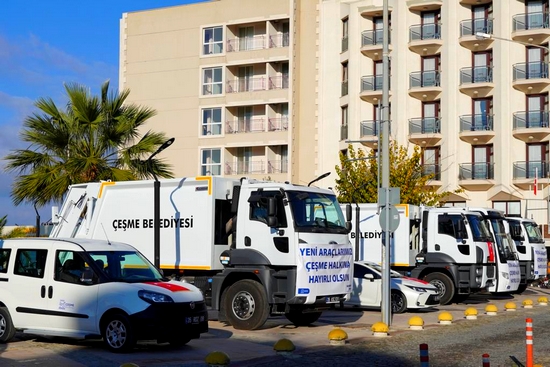 İlçeye yapılan hizmetlerin hız kazanmasıyla ihtiyaç duyulan 8 yeni aracın belediye filosuna eklendiğini belirten Çeşme Belediye Başkanı M. Ekrem Oran, Vatandaşlara daha hızlı ve verimli hizmet vermek amacıyla araç filosunu büyüterek, ihtiyaç duyulan 3 adet çöp kamyonu, 1 adet damperli kamyon, 1 adet otobüs, 2 adet doblo ve 1 adet binek aracı olmak üzere toplam 8 adet aracın belediye hizmetlerinde kullanılacağını söyledi.