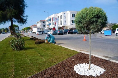 peyzaj çalışması başlattı. Çeşme Belediyesi Park ve Bahçeler Müdürlüğü tarafından yürütülen