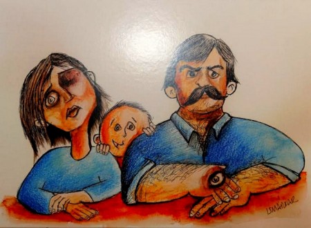 uygulandığı sergide, kadına yönelik eşitsizlik ve şiddeti anlatan çizgiler