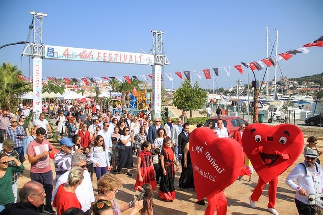Dalyan mahallesi sokaklarındaki Bando 35 müzikleri eşliğinde gerçekleştirilen kortej yürüyüşü sırasında esnafa ve vatandaşlara kırmızı güller dağıtıldı. Dalyan sahilindeki balık restoranlarının önündeki yolun kırmızı balonlarla kalp şeklinde süslenmesi, her restoranın önündeki kalp şeklinde giysiler giymiş animatörler, Aşk Festivali'ne renk katarken, vatandaşlar hatıra fotoğrafları çekilmek için adeta yarıştılar.