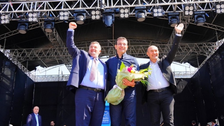 Ot ve hediyelik eşya stantlarını gezdikten sonra Hakan Aysev&Levent Gündüz’ün ‘Her Telden Notalar’ konserine katılan İstanbul Büyükşehir Belediye Başkanı Ekrem İmamoğlu konser sonrası Çeşme Belediye Başkanı Ekrem Oran’ı makamında ziyaret etti.