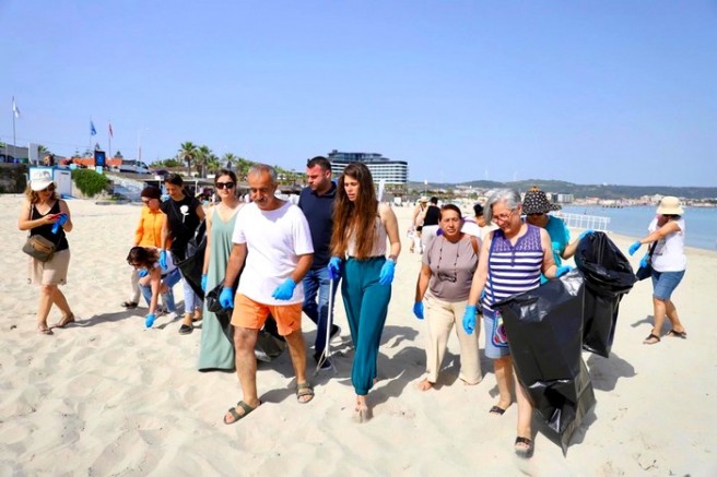 Adası’ndaki kıyı temizliğine katıldı. Ilıca Halk Plajı ve Eşek Adası’ndaki kıyı temizliğinin