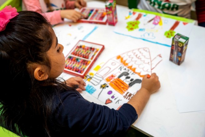 çocukların ücretsiz olarak katılabileceği atölyede gözetmenler eşliğinde yapılacak olan resimler,