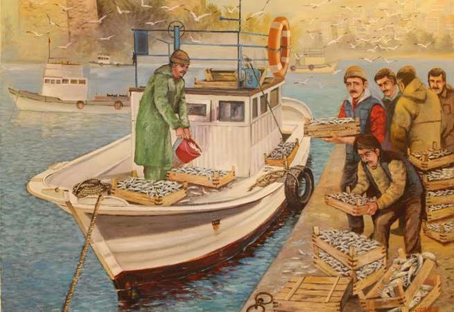 biri olan balıkçılığa dair detayların işlendiği tabloları gezdi. Özellikle “Karadeniz